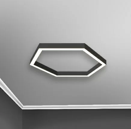 Светодиодный светильник. Форма Шестиугольник с отверстием. Борт ПВХ. Мощность 117Вт. Световой поток 10647лм. Цветовая температура 4000K. Габаритные размеры 1500х1299х100мм. S80мм. Цвет корпуса Белый 010М. Способ монтажа накладной. Блок питания встроенный. Крепеж Магниты.