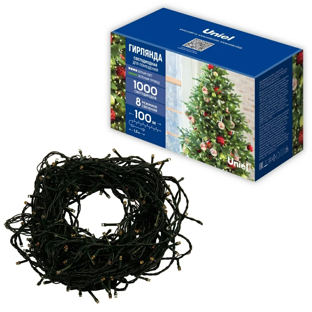 ULD-S10000-1000/DGA WHITE IP20 ULD-S10000-1000/DGA WHITE IP20 Гирлянда светодиодная, 100м. 1000 светодиодов. Белый свет. Провод зеленый. ТМ Uniel