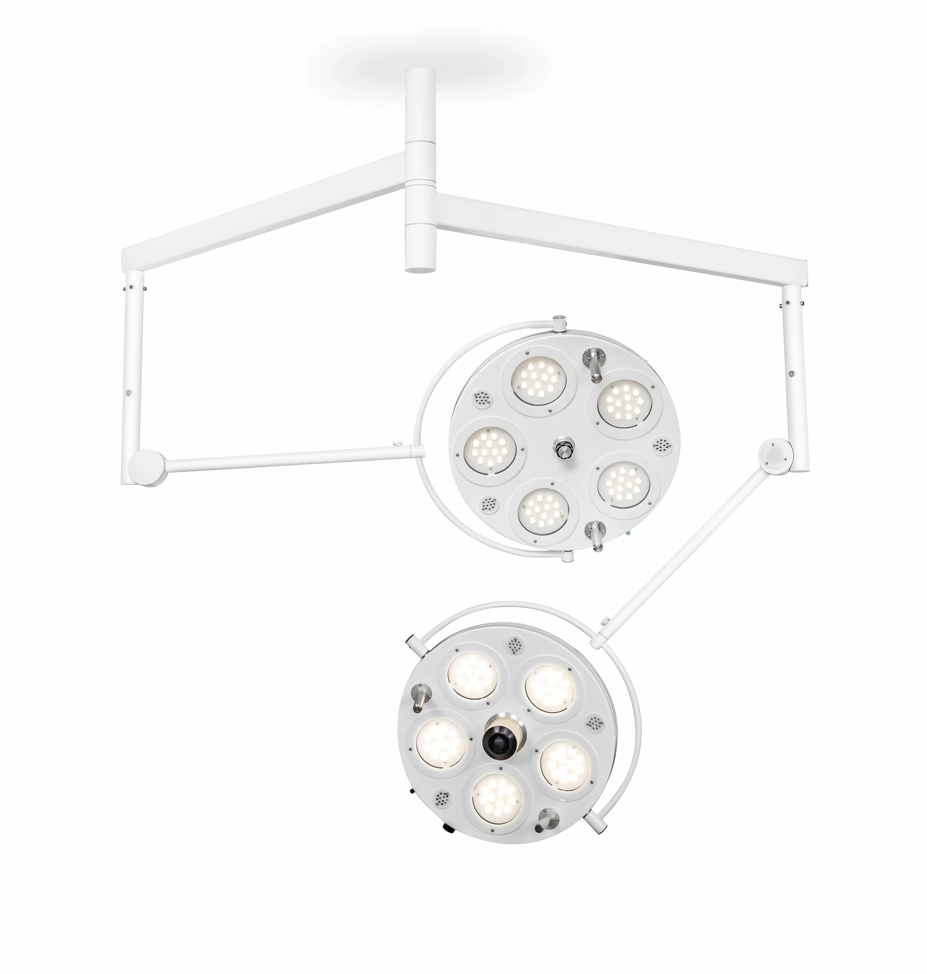 Медицинский двухкупольный хирургический светильник «FotonFly 5М5С» представляет собой инновационное решение для освещения операционных залов, обеспечивающее высококачественное освещение с максимальным комфортом для медицинского персонала. Этот потолочный подвес с камерой Full HD и оптическим зумом, а также с видеорегистратором на 500 ГБ, является идеальным выбором для современных медицинских учреждений, стремящихся к повышению качества и безопасности хирургических операций.