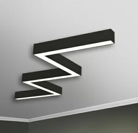 Светодиодный светильник. Форма Зигзаг. Мощность 126Вт. Световой поток 11466лм. Цветовая температура 4000K. Размеры 3384х733х70мм. Размер сегмента 987мм. Количество сегментов 5шт. Цвет корпуса Серый RAL9006 МУАР. Сечение профиля 50x70мм. Способ монтажа накладной. Блок питания встроенный.