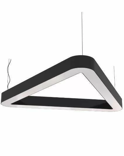 Светодиодный светильник. Форма Треугольник закр. с отверстием. Борт ПВХ. Мощность 114Вт. Световой поток 10374лм. Цветовая температура 4000K. Габаритные размеры 1500х1335х100мм. S80мм. Цвет корпуса Белый 010М. Способ монтажа подвесной. Блок питания встроенный. Крепеж Трос 2м.