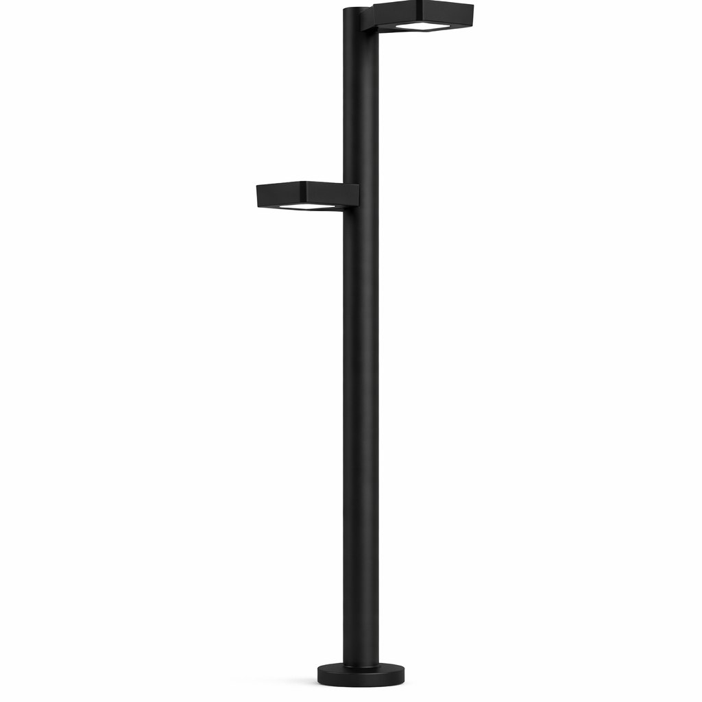 Для проектов, где свет должен не только освещать, но и формировать архитектурный облик пространства, созданы световые опоры серии Триумф-Акцент. Это высокие, монолитные по восприятию столбы с бескомпромиссно четкой геометрией и глубоким черным цветом. Их дизайн — это чистая функциональность, возведенная в эстетическую концепцию. Каждая опора увенчана специальной световой головкой, обеспечивающей эффективное и направленное распределение света, превращая их в мощные акценты и надежные ориентиры в городской среде.