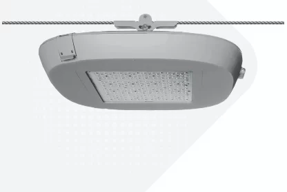 освещения улиц, парков, скверов, бульваров, дворов и коттеджных поселков. Регулируемое по углу наклона тросовое крепление может быть установлено на горизонтально натянутый трос диаметром до 12 мм